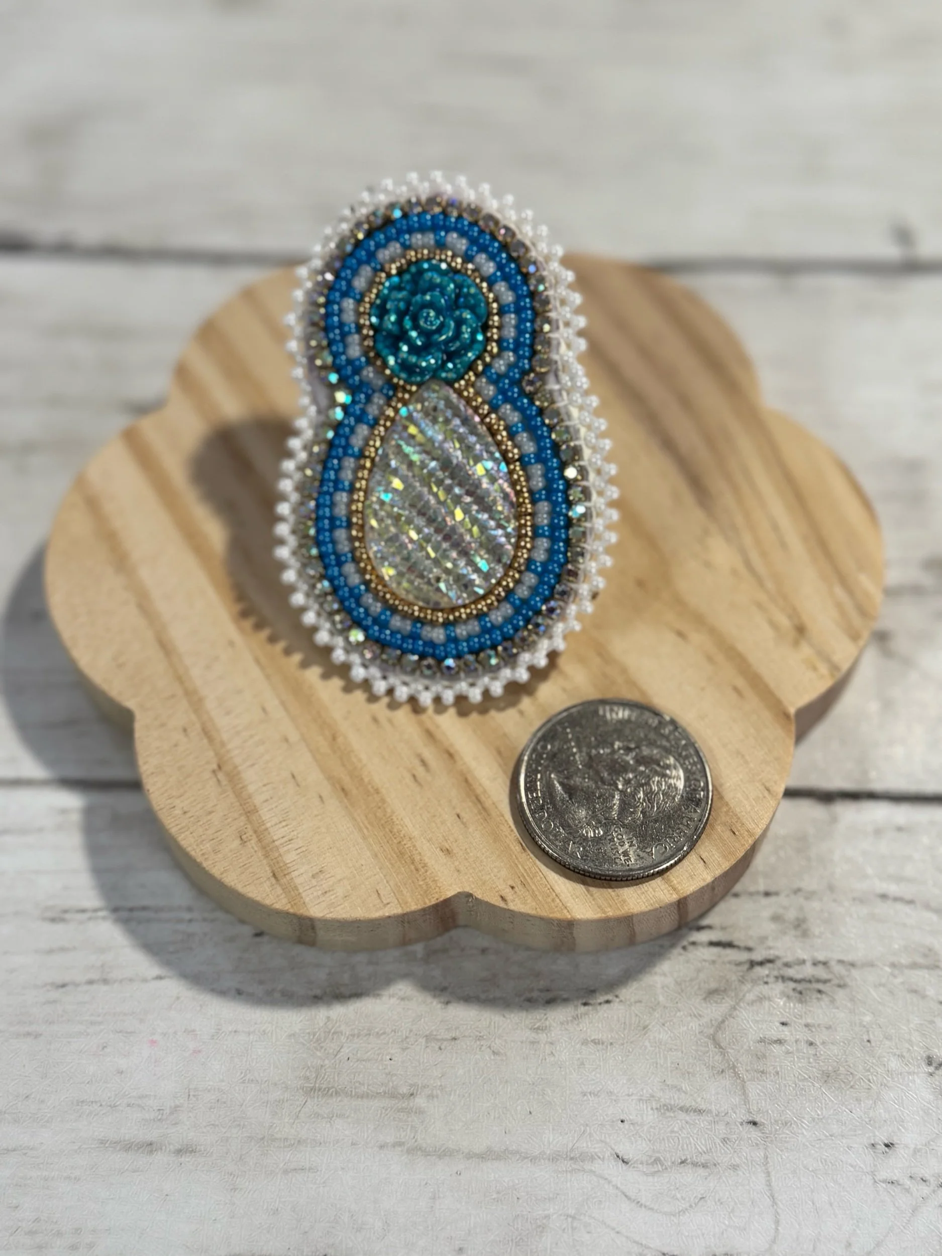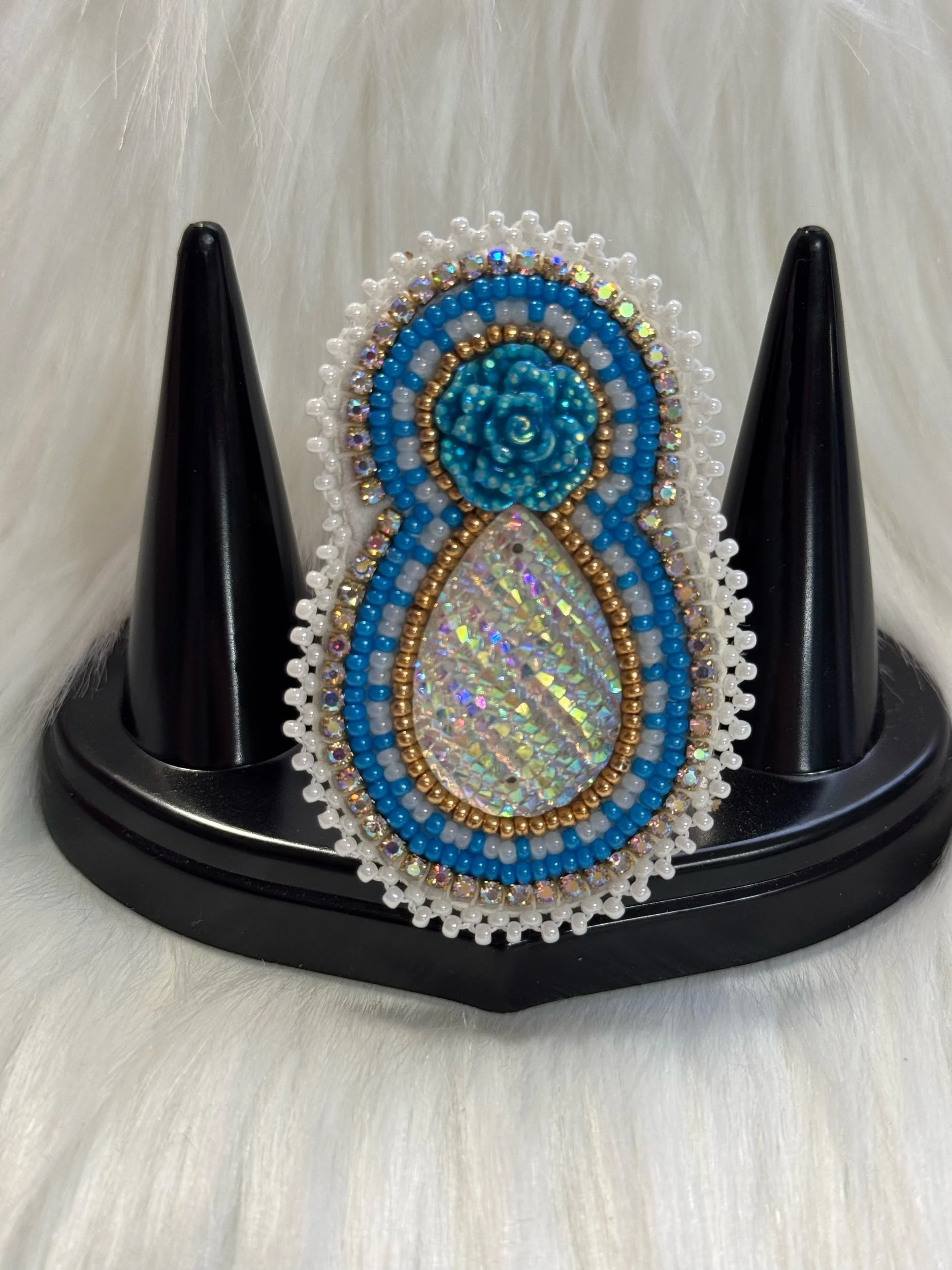 Made with size 11 seed beads, SS6 rhinestone banding with buckskin backing