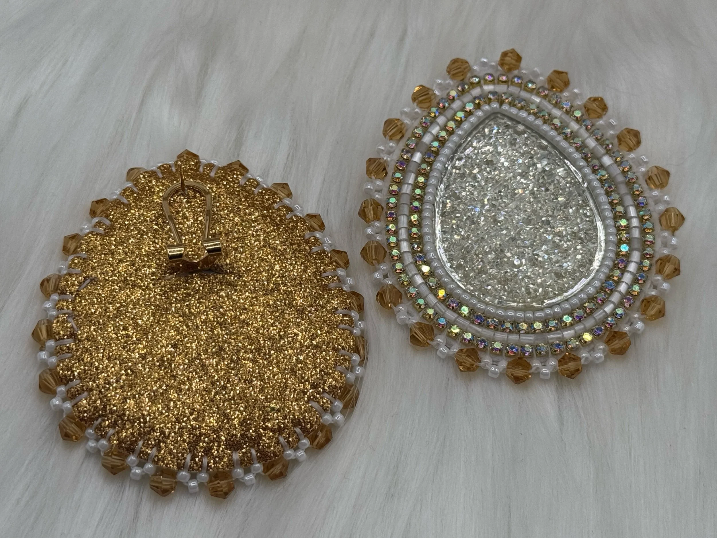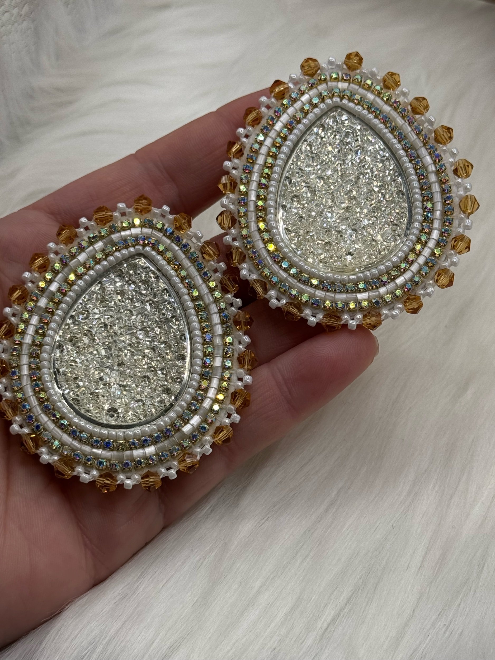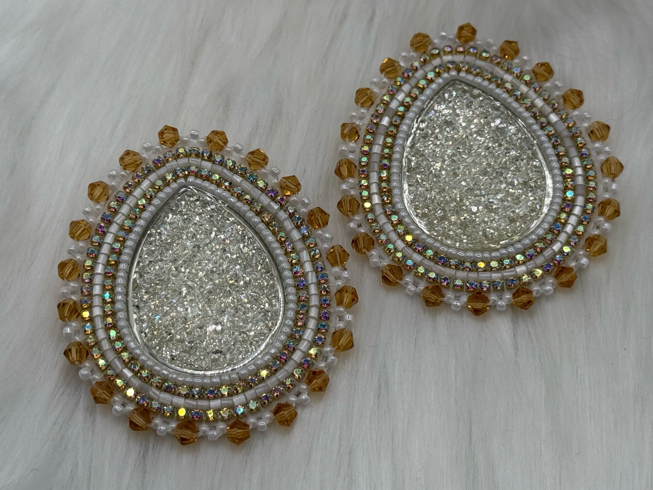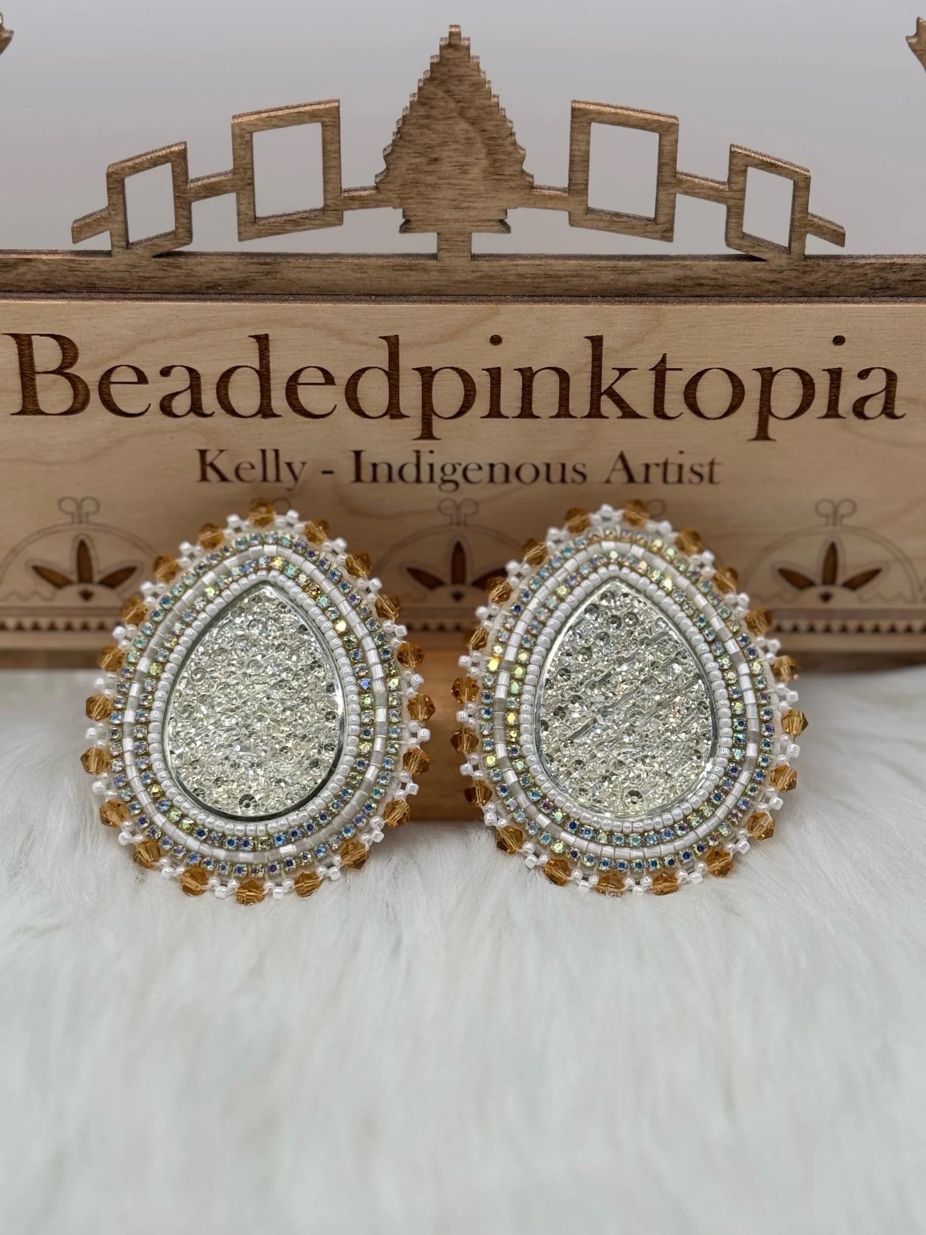 Shop › White & Gold Earrings Image 1 of 5 Image 2 of 5 Image 3 of 5 Image 4 of 5 Image 5 of 5 White & Gold Earrings $50.00 White and gold teardrop earringsFingernail posts Add To Cart Added! White and gold teardrop earringsFingernail posts