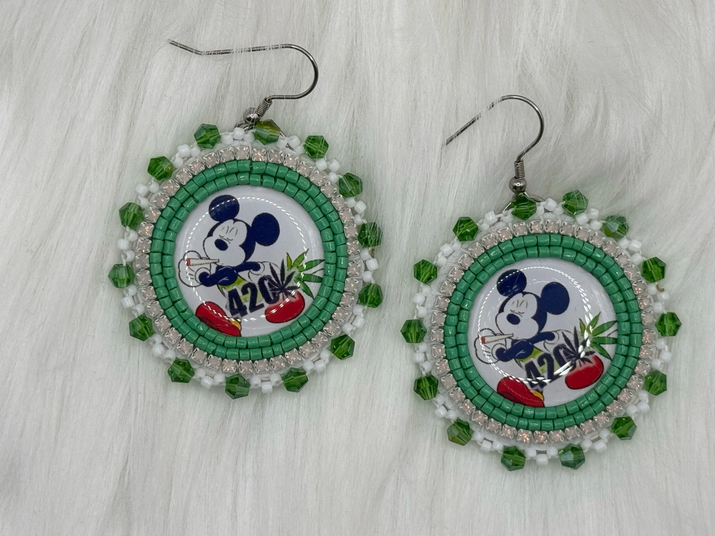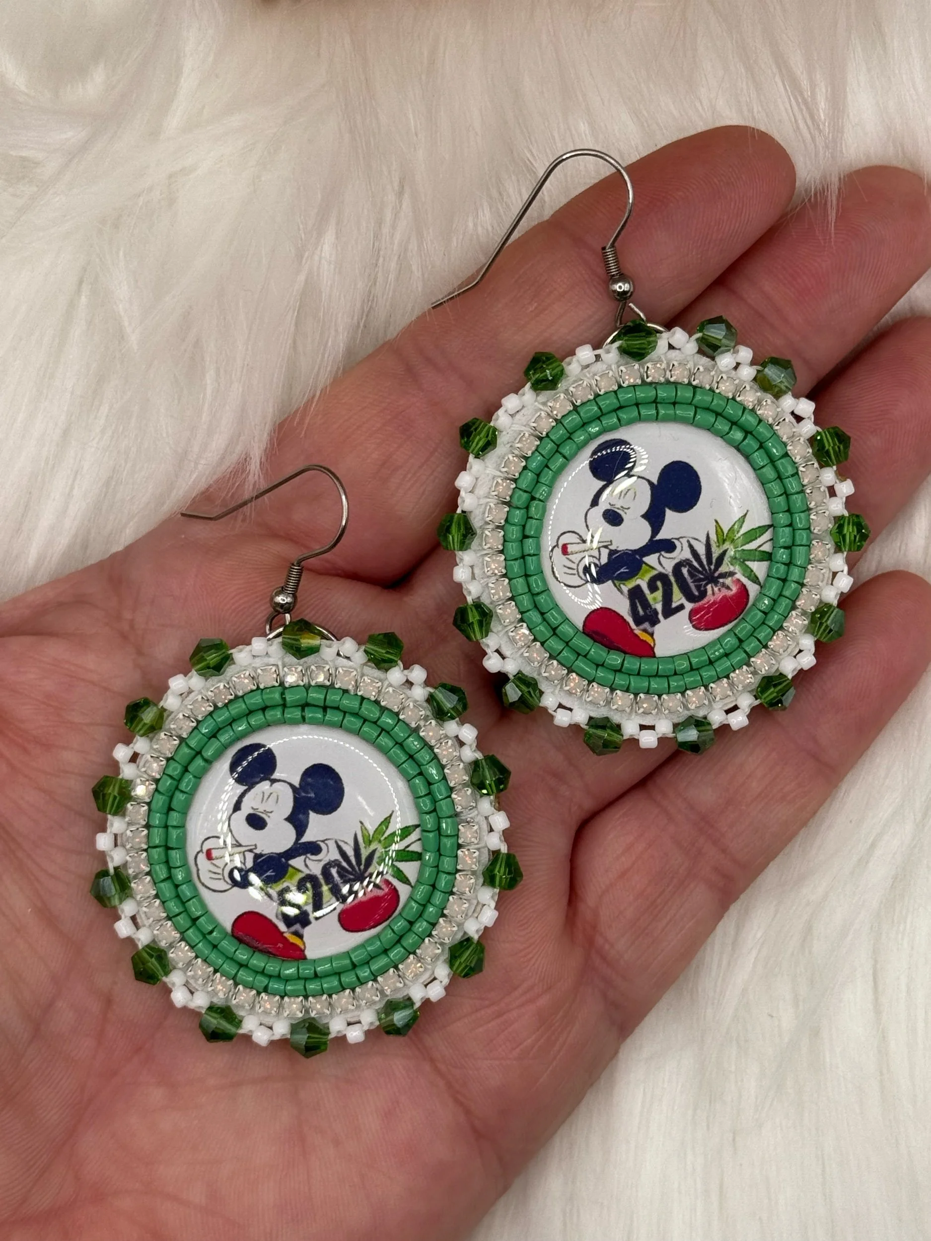 Shop › 420 Mickey Image 1 of 5 Image 2 of 5 Image 3 of 5 Image 4 of 5 Image 5 of 5 420 Mickey $35.00 420 Mickey EarringsStainless steel hooksApprox 2 inches Add To Cart Added! 420 Mickey EarringsStainless steel hooksApprox 2 inches
