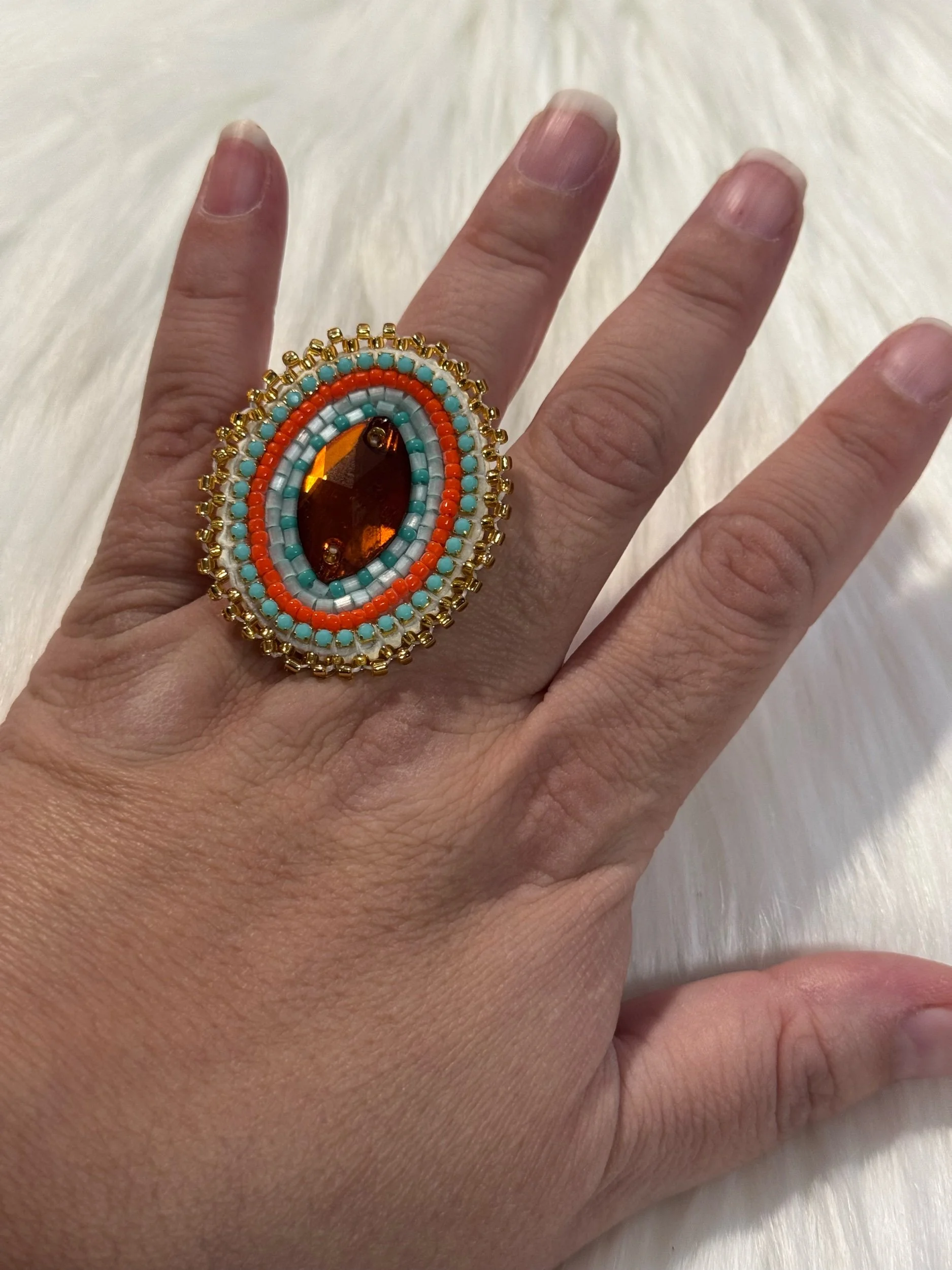 Shop › Life Of A Showgirl Adjustable Ring Image 1 of 5 Image 2 of 5 Image 3 of 5 Image 4 of 5 Image 5 of 5 Life Of A Showgirl Adjustable Ring $30.00 Beaded adjustable ringApprox 1 3/4 inches long by 1 1/2 inches wide Add To Cart Added! Beaded adjustable ringApprox 1 3/4 inches long by 1 1/2 inches wide