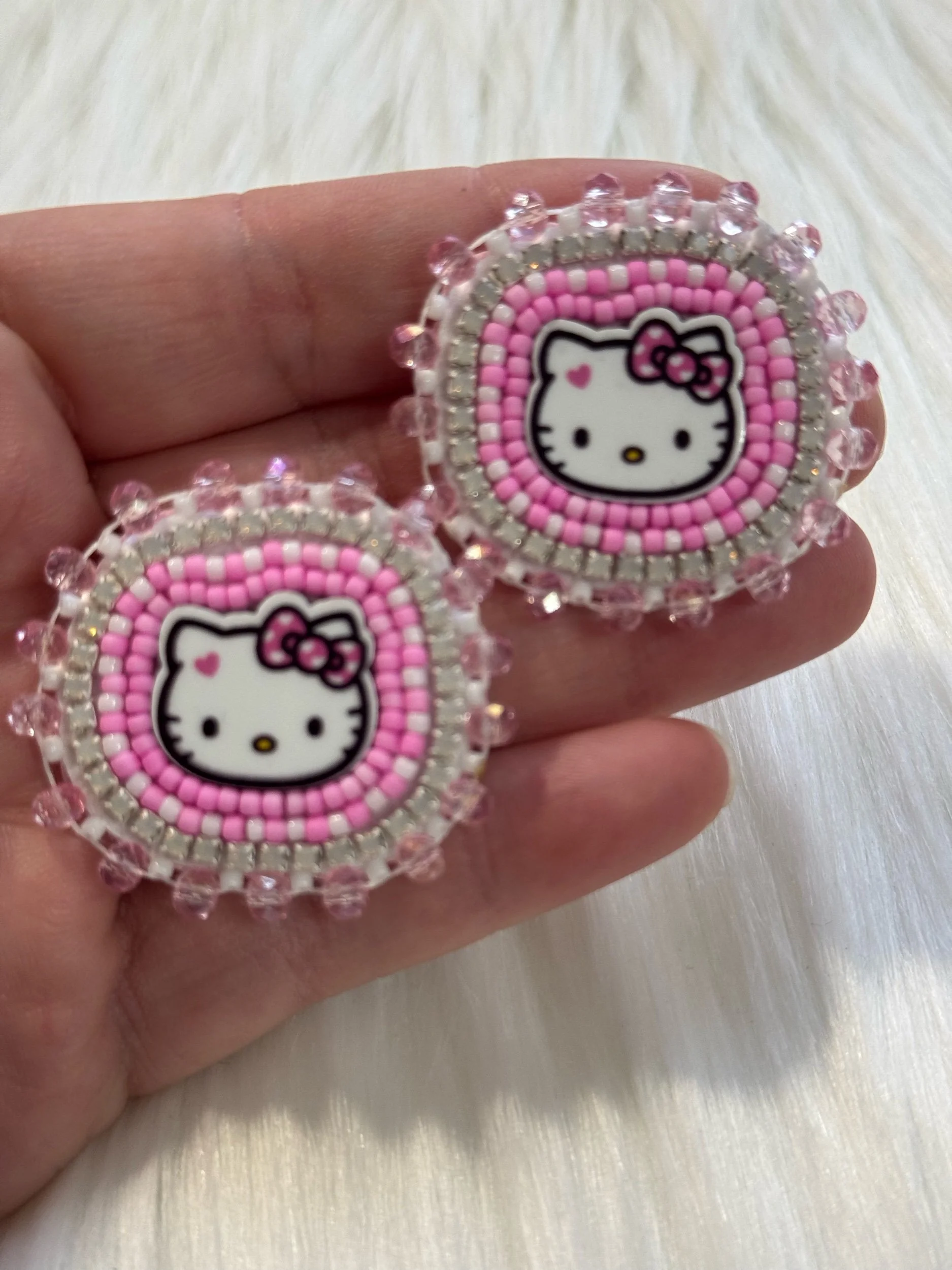 Shop › Mini Hello Kitty Earrings Image 1 of 4 Image 2 of 4 Image 3 of 4 Image 4 of 4 Mini Hello Kitty Earrings $30.00 Mini HK earrings on postsApprox 1 1/2 inches wide and long Add To Cart Added! Mini HK earrings on postsApprox 1 1/2 inches wide and long