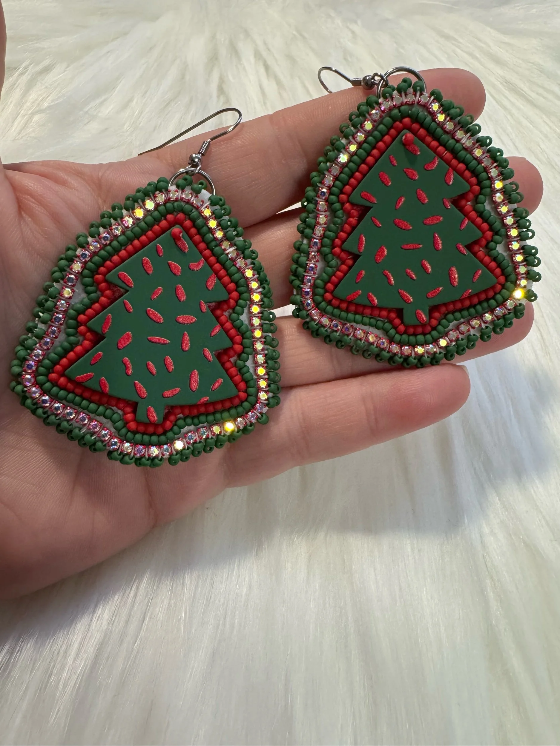 Shop › Green and Red Christmas Tree Earrings Image 1 of 5 Image 2 of 5 Image 3 of 5 Image 4 of 5 Image 5 of 5 Green and Red Christmas Tree Earrings $45.00 Perfect earrings for the Christmas seasonOn stainless steel hooksApproximately 2 1/2 inches long and 2 inches wide Add To Cart Added! Perfect earrings for the Christmas seasonOn stainless steel hooksApproximately 2 1/2 inches long and 2 inches wide